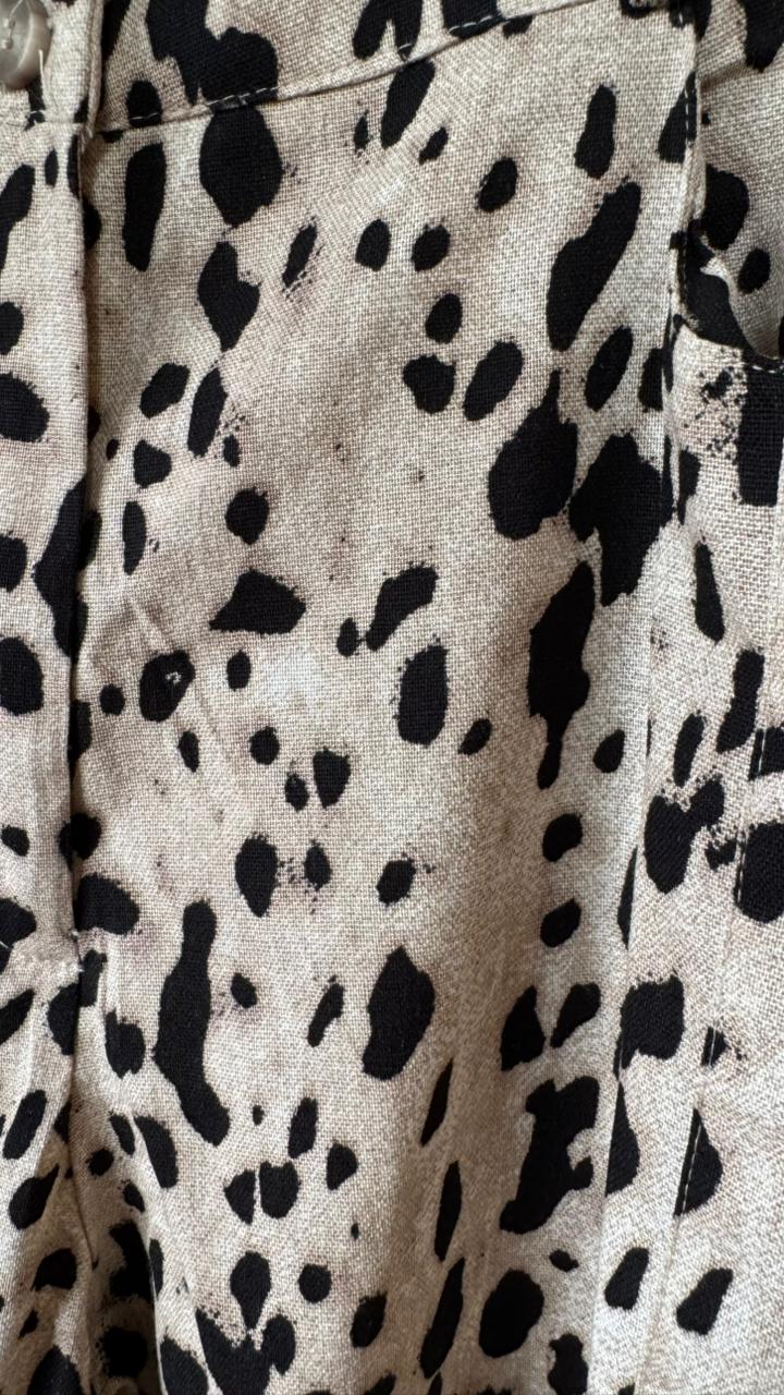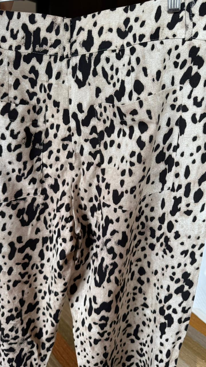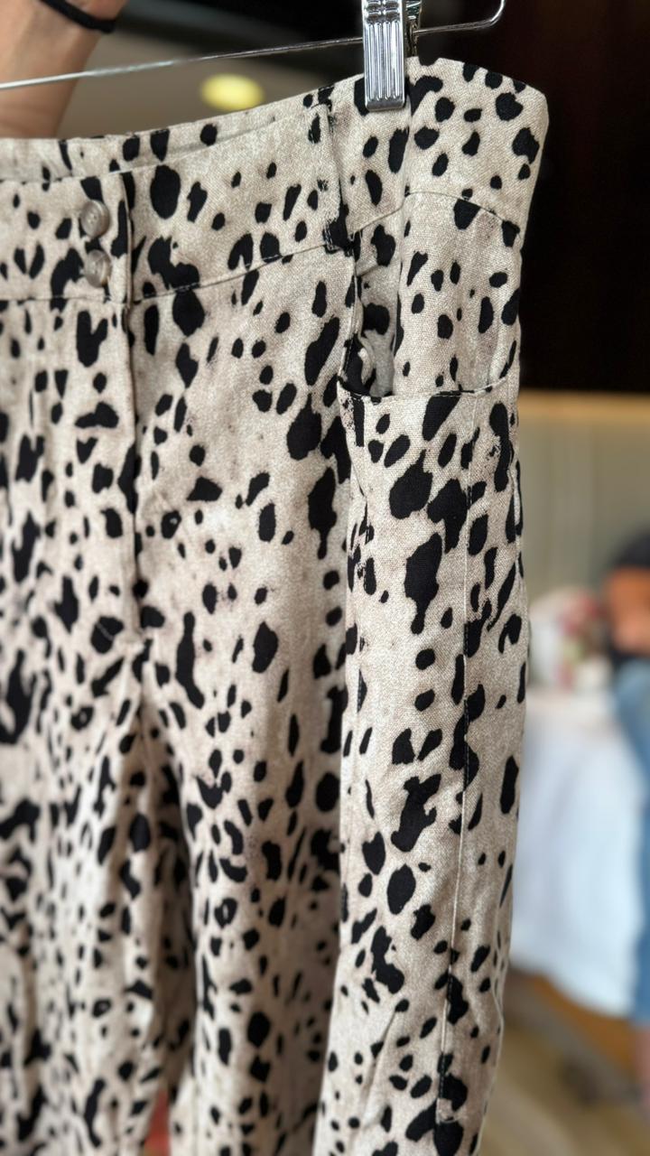 Calça animal print de linho, estilo baloon. Possui bolsos laterais e traseiros.
